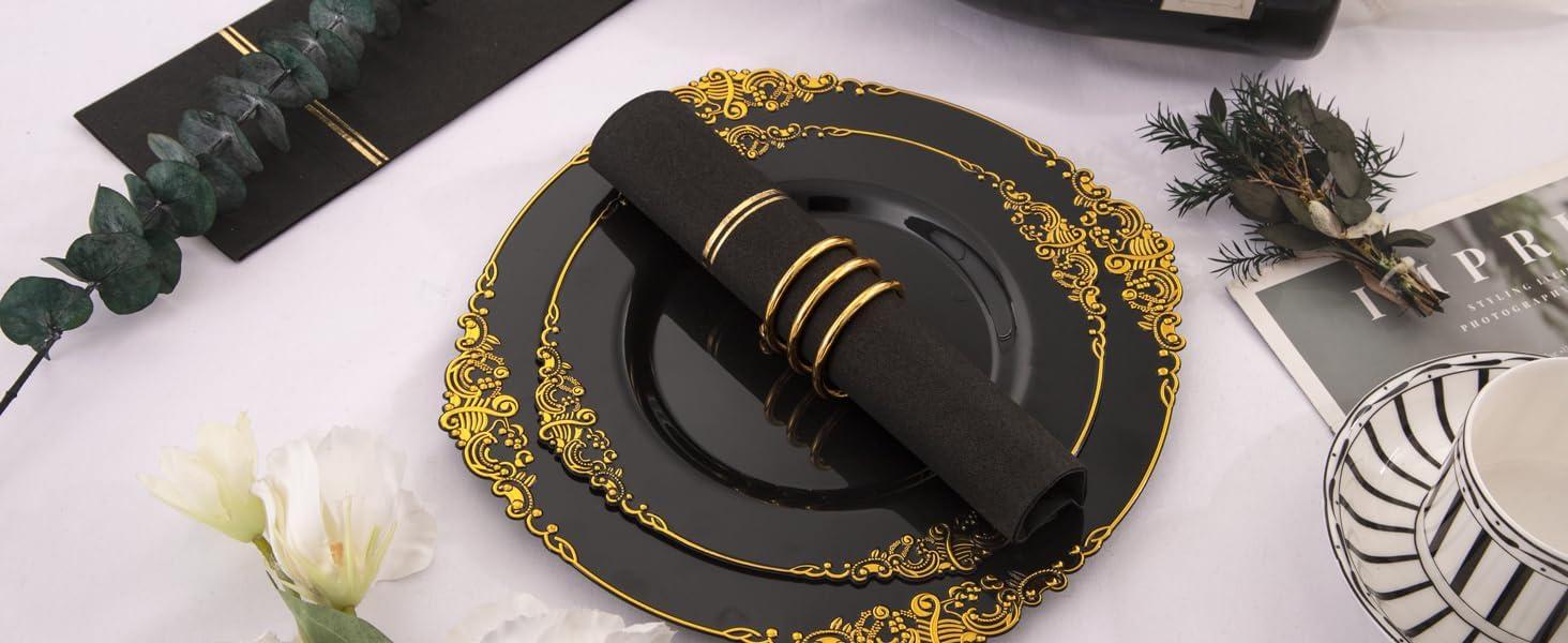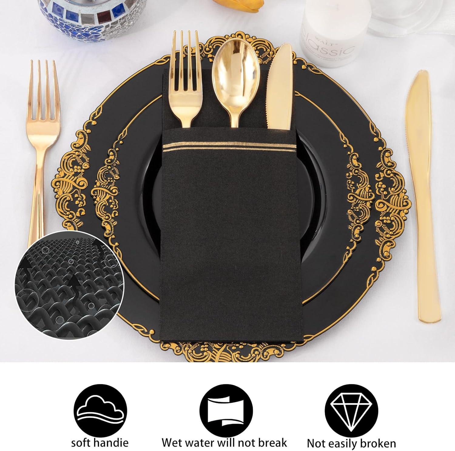 Elegant Design: Disposable napkins with pocket, printed with delicate gold lines, highlight your fashion taste, add charm and elegance to your dining table, bedroom. To provide guests with quality comfort and luxury.