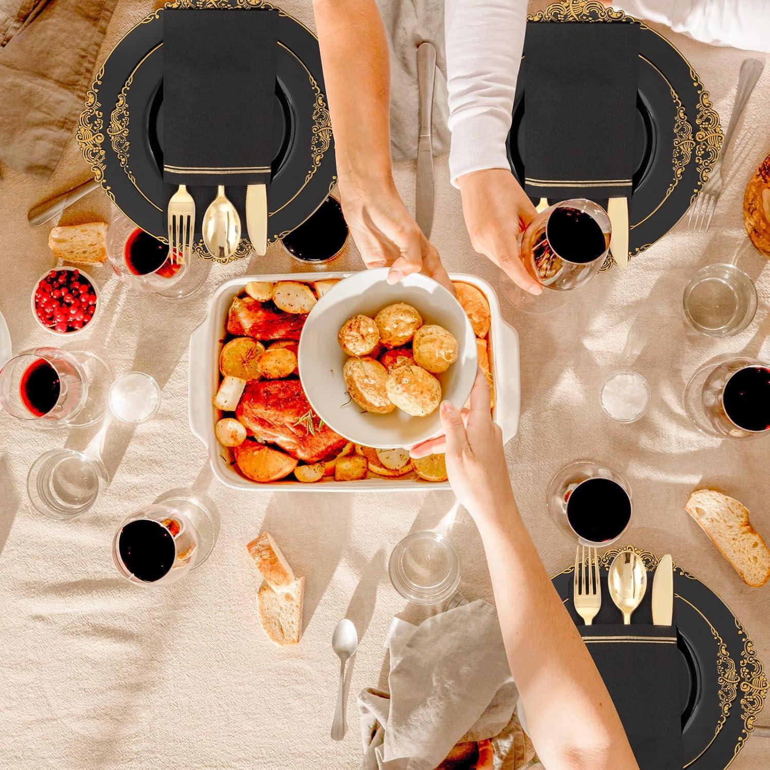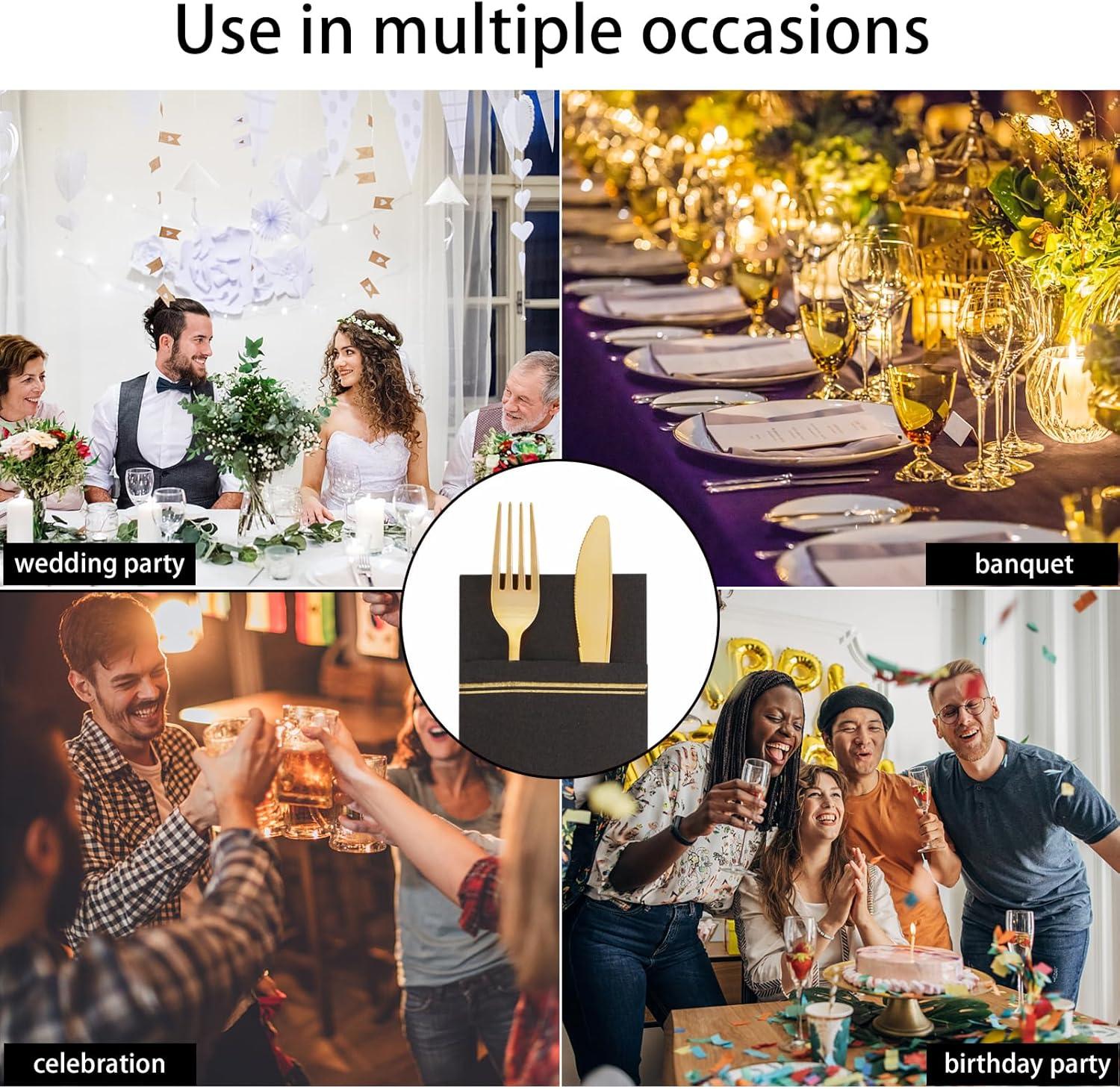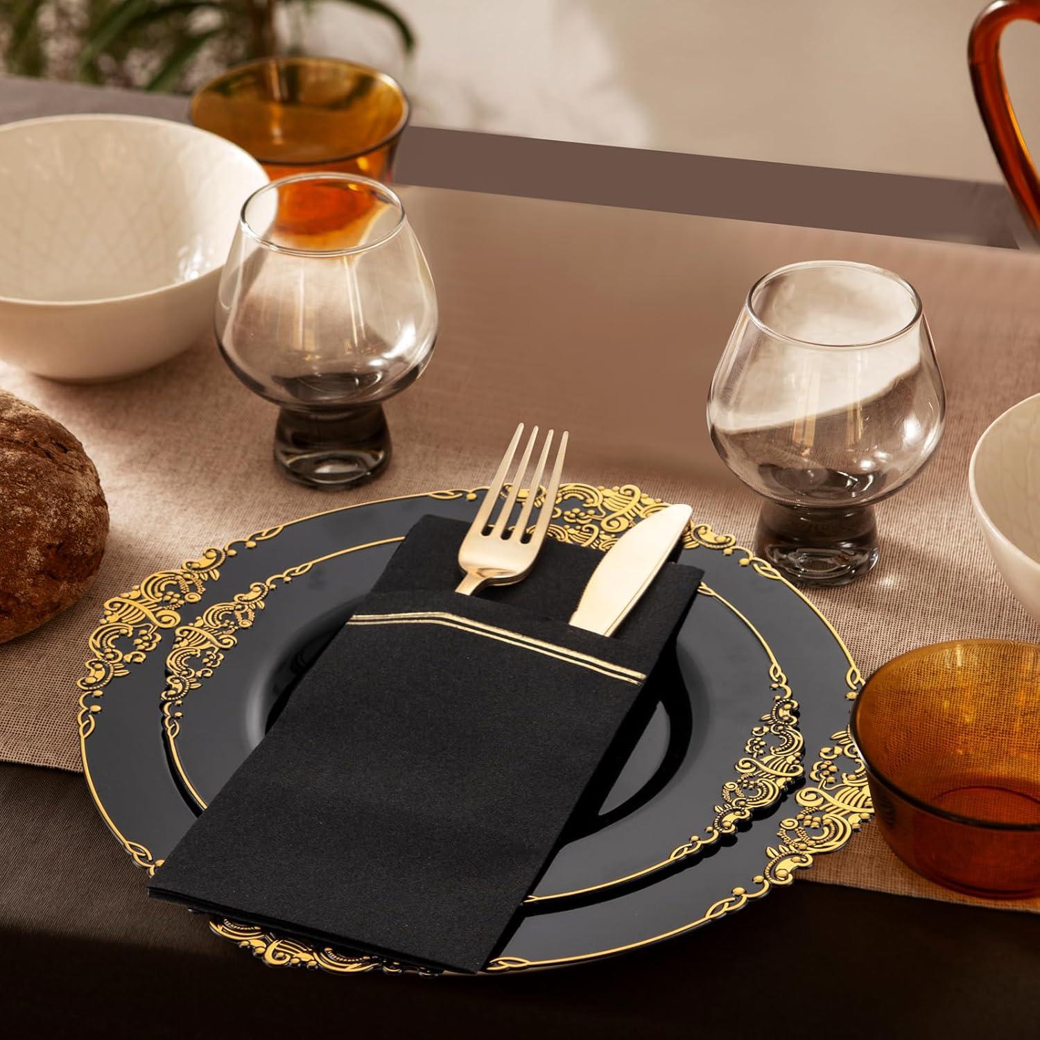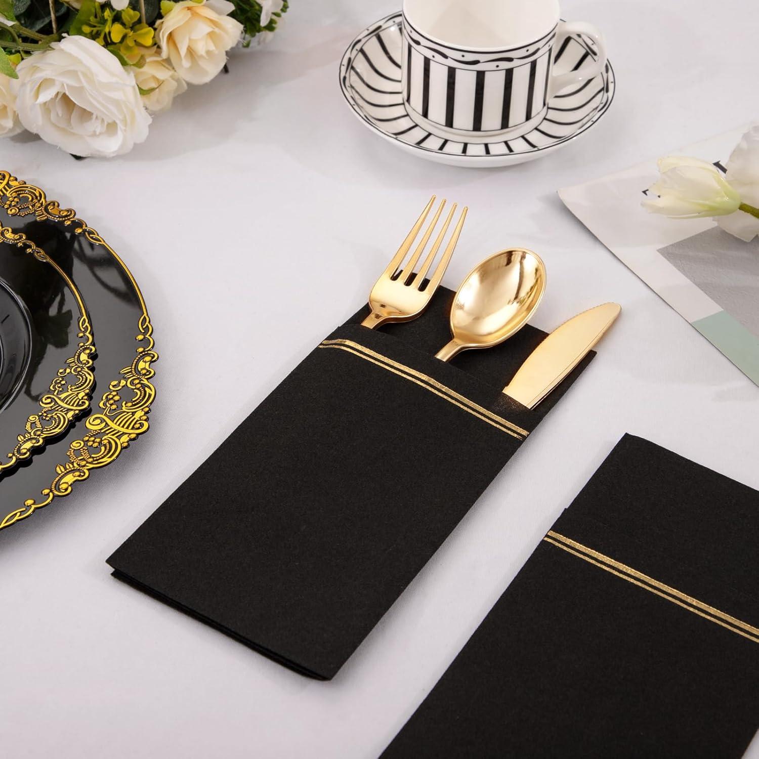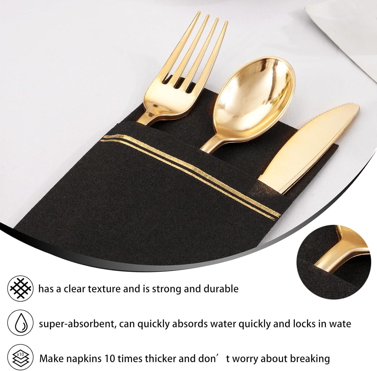 Fancy Paper Towels With Pockets: Combined with the innovative design, the black disposable napkins with pocket are easy for you to place your cutlery, ensuring that your cutlery will not move and drop when needed. Leave a neat appearance for your guests.