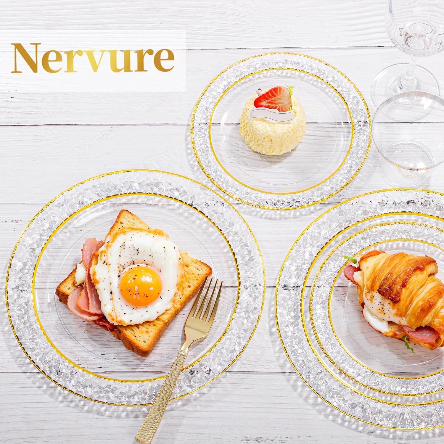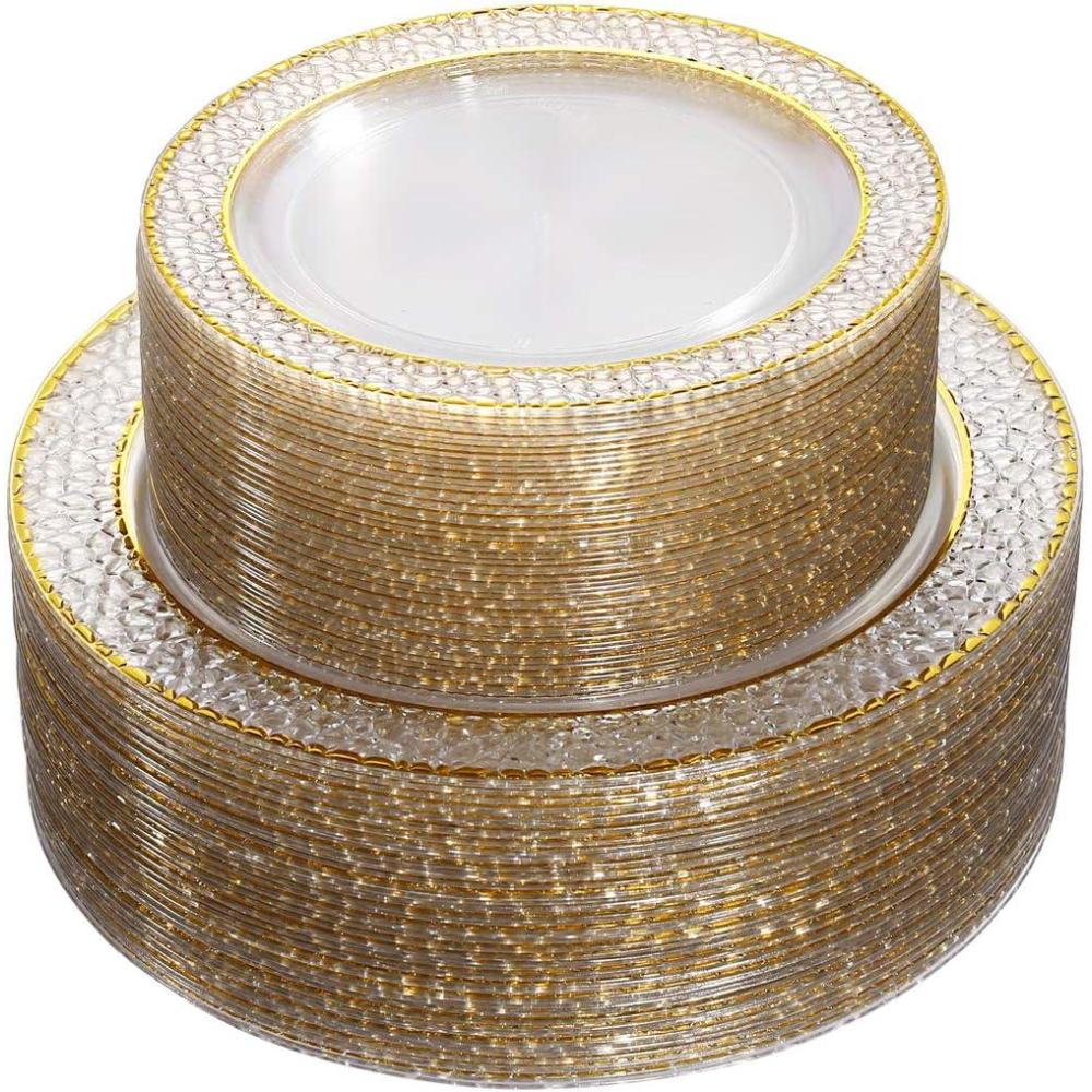 Durable & Heavy-Weight: Impress your guests with our disposable gold plastic plates. You can feel the great texture by the weight of blue gold plastic plates in your hand. Our manufacturing process forges durable gold plastic plates that resists breaking, bending and snapping even when meat is served!