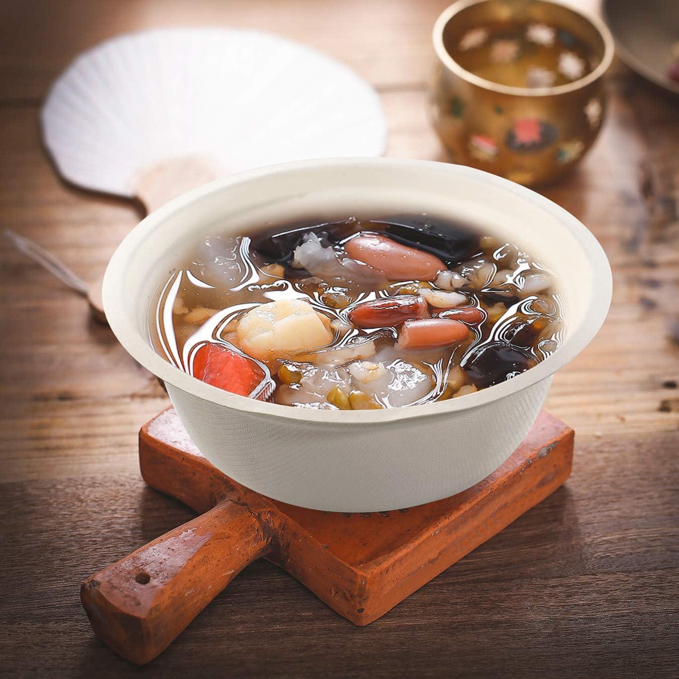 Sturdy & Durable Disposable bowls: The Sugar Cane Fibers Bowls use durable plant fibre in their construction. These fibre are naturally stronger and more durable than traditional paper bowls. And our disposable soup bowls are free of harmful bleaches, chemicals, and petroleum products.Give you a green and beautiful life.
