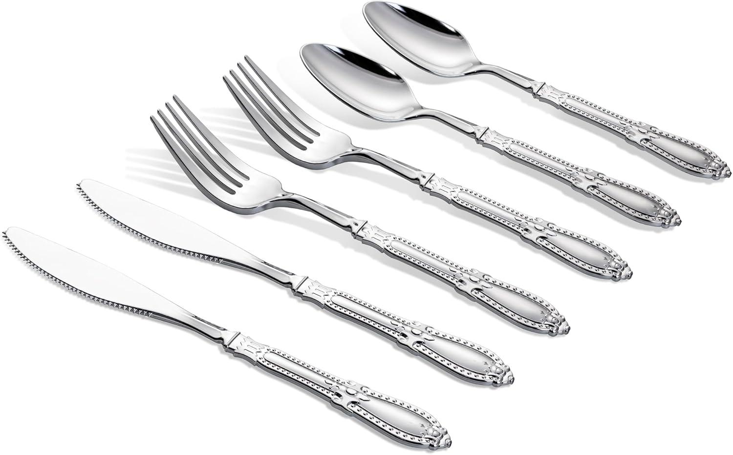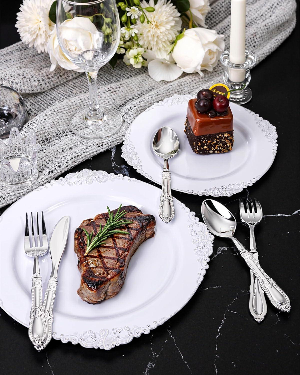 Perfect for Any Occasion – These disposable party silverware are ideal for wedding,anniversary,birthday and party. The silver plastic silverware will heighten the atmosphere of party with their classical design. Get your table ready with our silver plastic cutlery and elevate any occasion with their enchanting charm