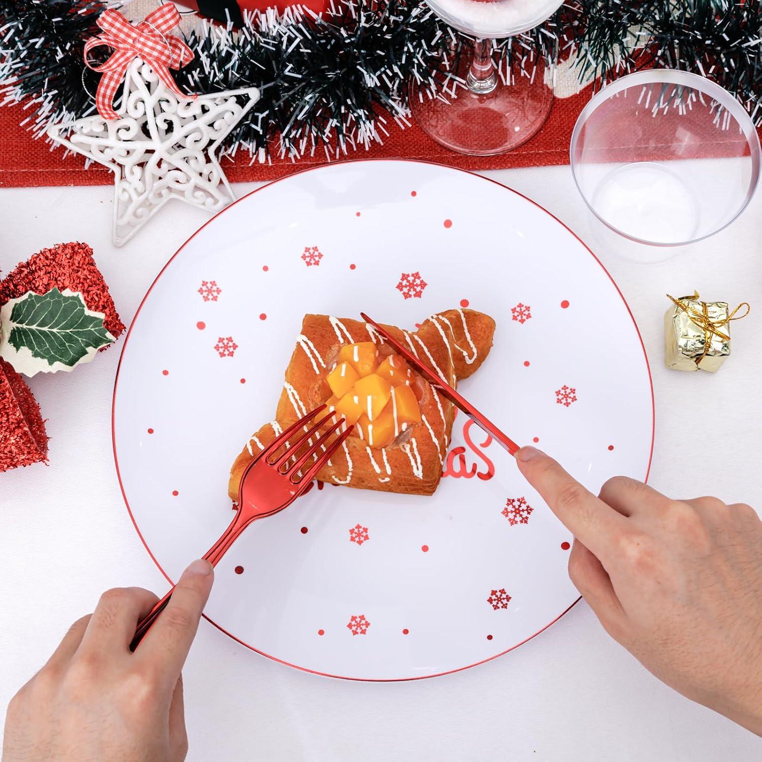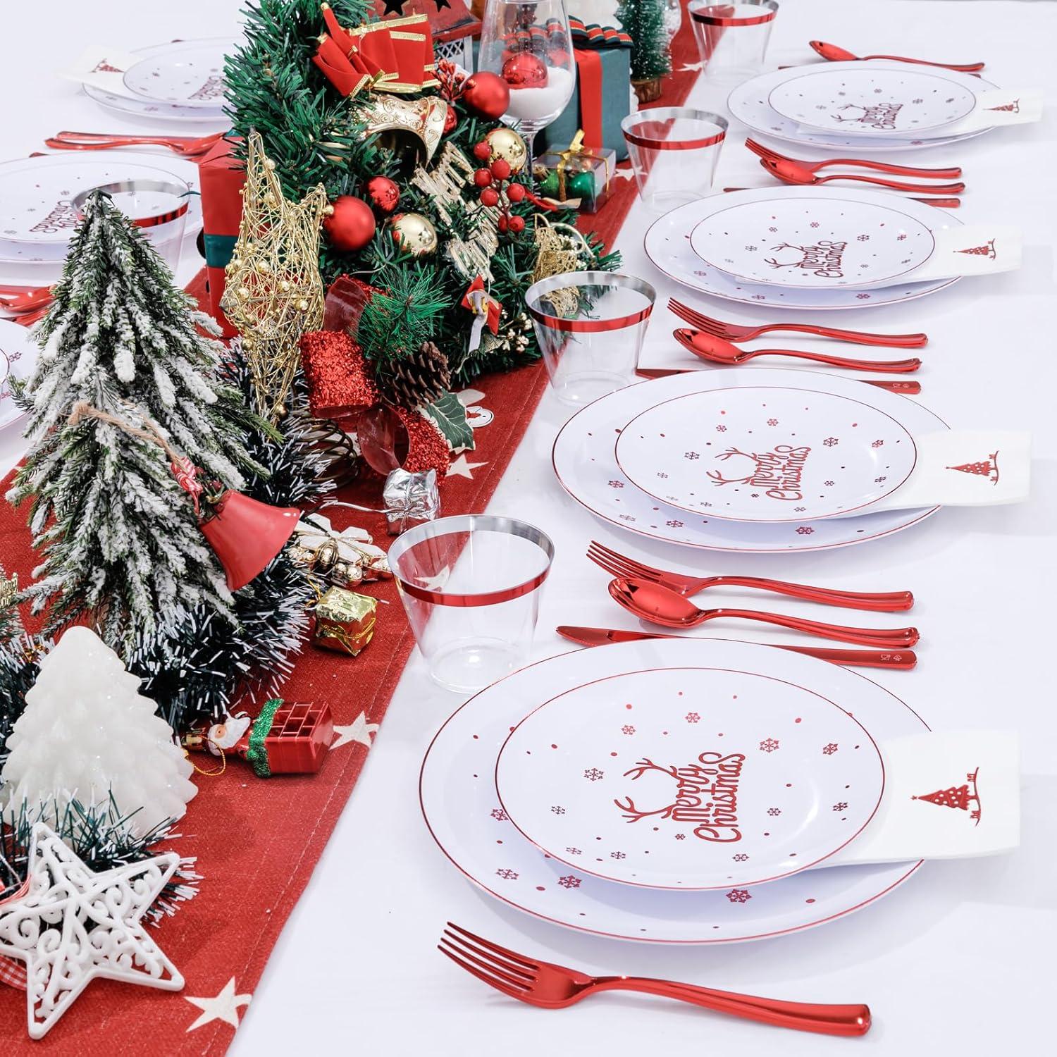 Convenience and Ease: Disposable Christmas dinnerware is available in sufficient quantities to be the perfect choice for your family and friends at Christmas party. Silver disposable dinnerware sets allow you to enjoy more leisure time after meals, because you can throw away and save the time of dish cleaning.