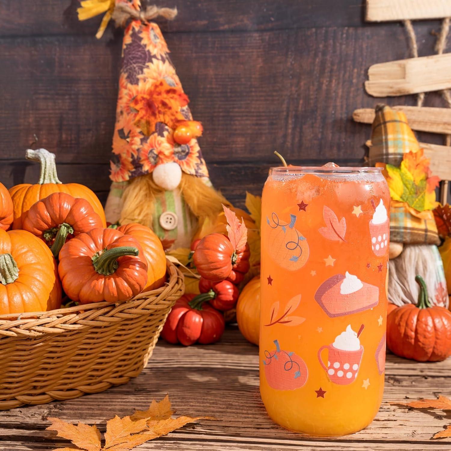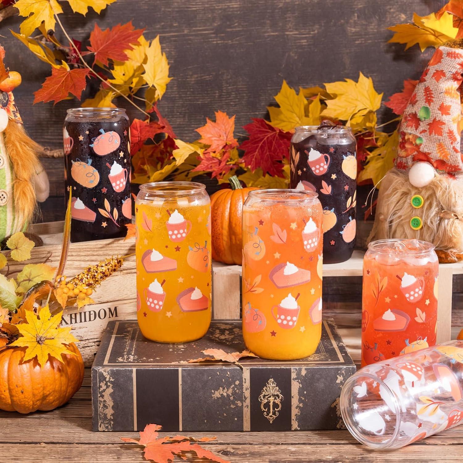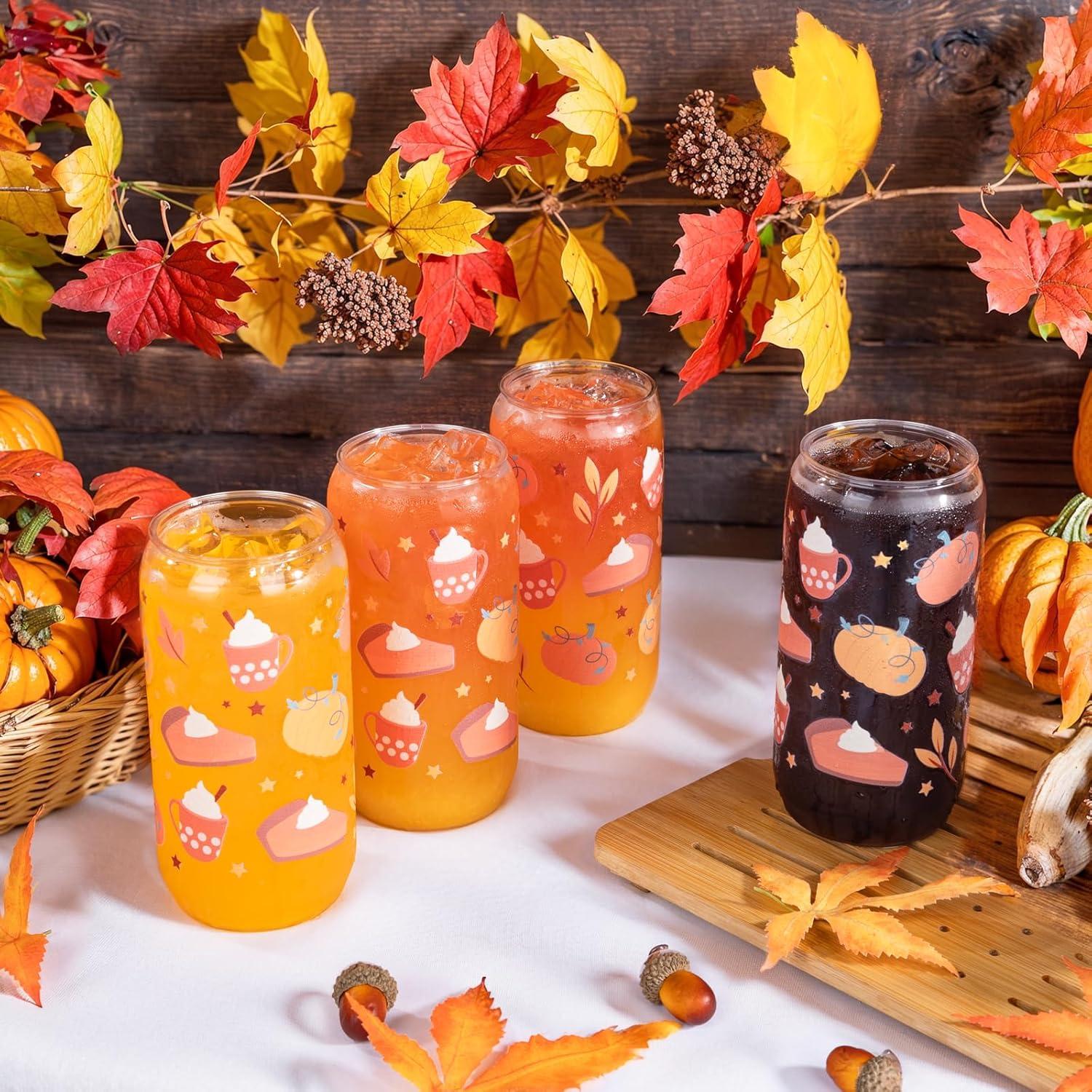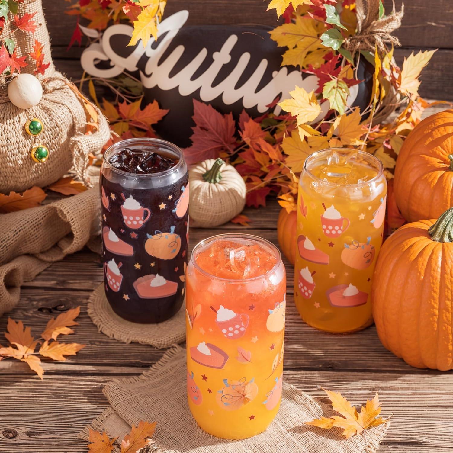 Nervure 20 Pack Can Shaped Cups - 16oz Classic Drinking Cups for Beer, Iced Coffee, Smoothie, Boba Tea, Cocktail - Cute Tumbler Cool Plastic Cup(Cute Fall Thanksgiving)