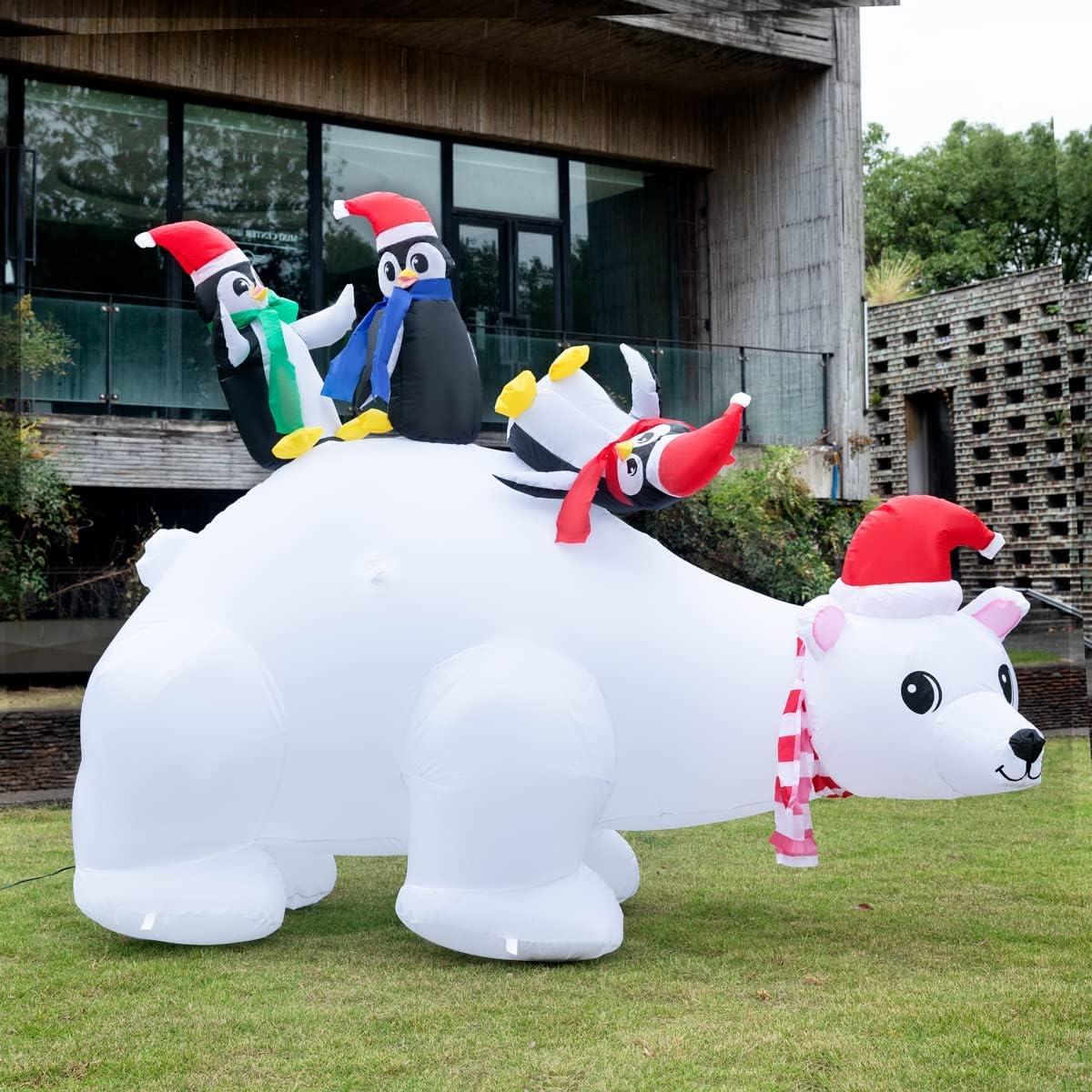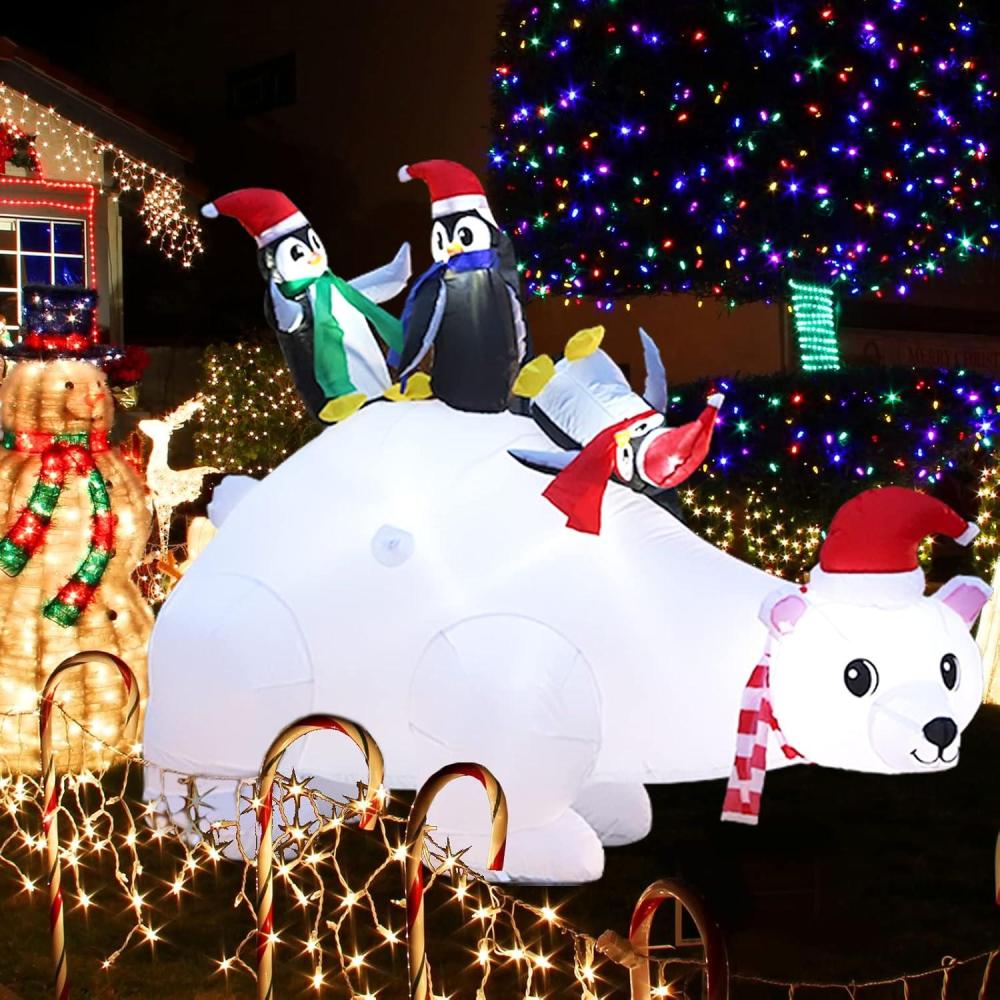 LOVELY APPEARANCE: The Christmas inflatable polar bear adopts the appearance design of a polar bear. The polar bear is simple and cute. When installed in the yard, it will bring warmth to family and neighbors, so that everyone can enjoy the Christmas together, and bring happiness to everyone who sees Christmas inflatables outdoor decorations.