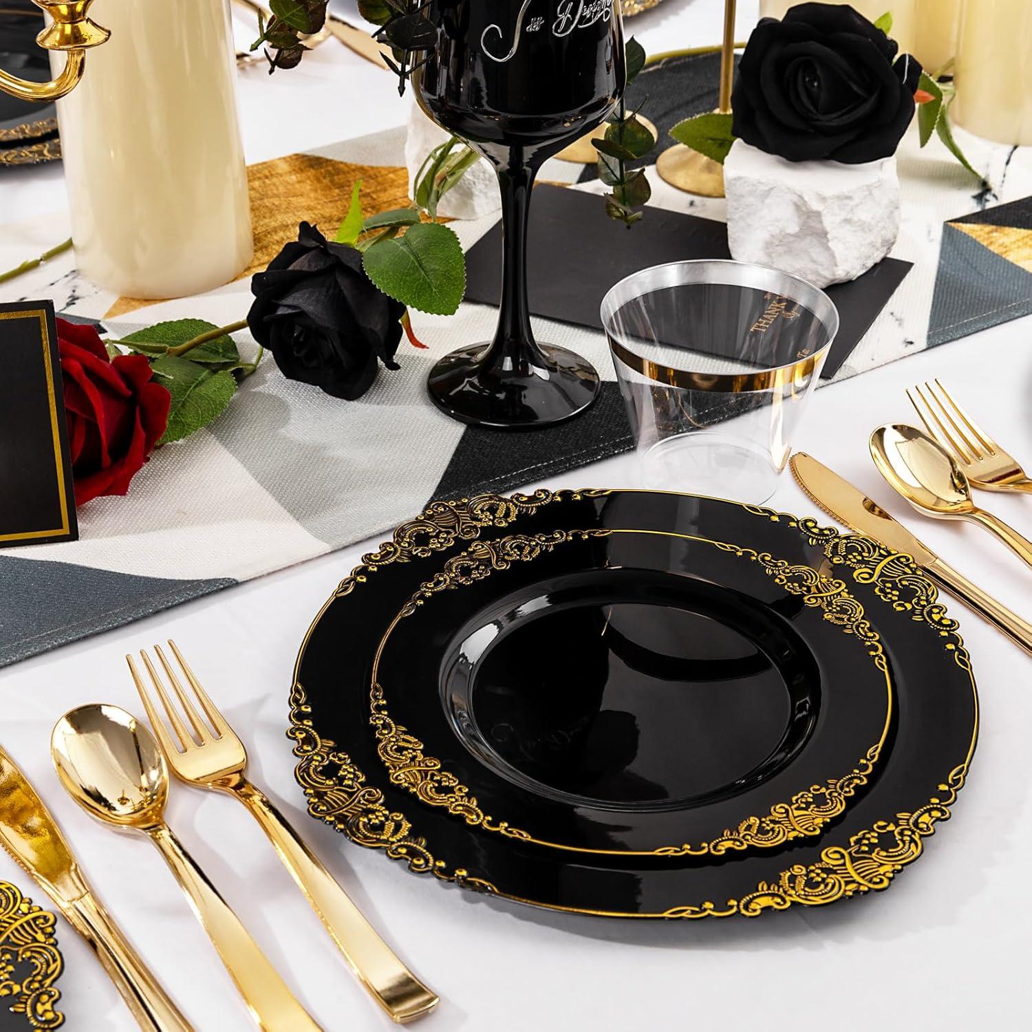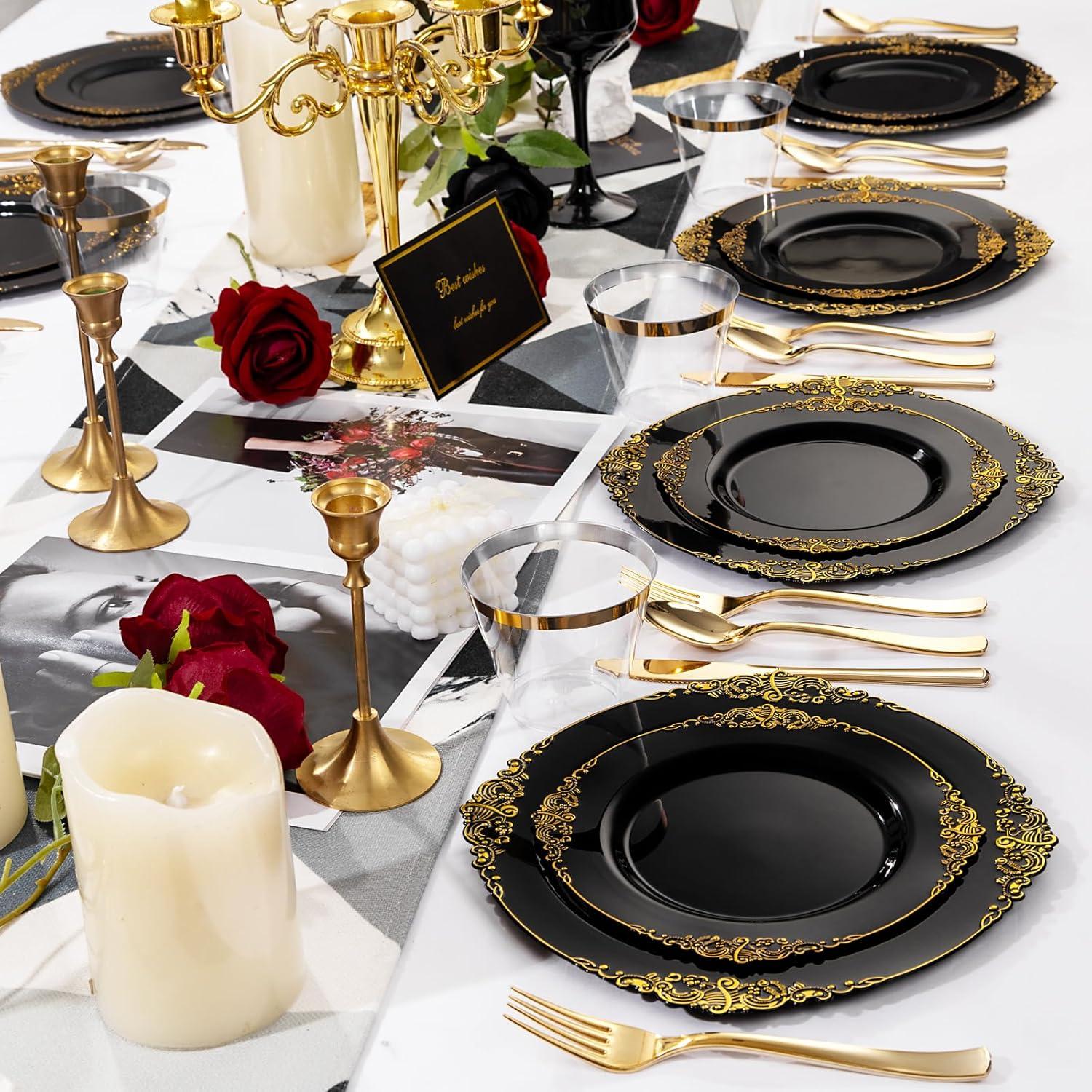 Versatile Functionality: Ideal for a wide array of culinary presentations, from appetizers to main courses and desserts, these stylish yet practical disposable plates for wedding party can effortlessly accommodate various types of food while maintaining the sophisticated atmosphere of your event. Our gold wedding plates want to give you a perfect holiday experience!