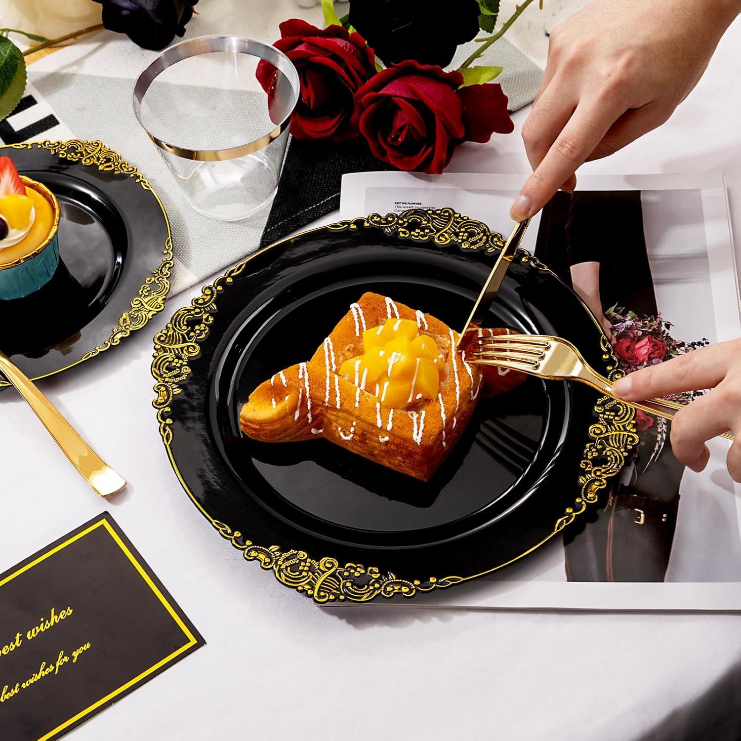 Perfect for Any Occasions: Our gold plastic disposable plates are designed to elevate any event with a touch of elegance, whether it's a birthday, wedding, anniversary, or any other special occasion. The magnificence of our plastic plates will make your party perfect!